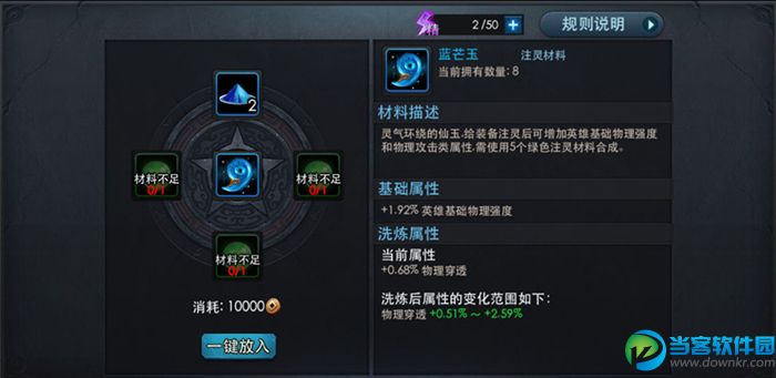 点击我的材料,玩家可以对未装备上去的注灵宝石进行洗炼,不同品质的宝石需要不同的洗炼材料,需要注意的是洗炼一次的代价可不低哦。