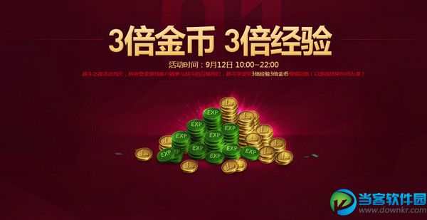 本次战斗之夜正式开启时间为9月12日上午10:00,但是玩家们可以提前登录游戏,只要在10:00-22:00期间在线游戏即可获得3倍经验3倍金币加成。