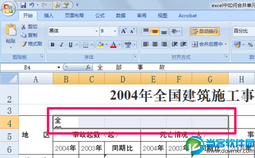 首先选中要拆分的单元格,然后点击开始选项卡中的合并后居中。
