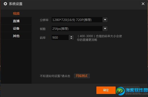 视频设置界面,大家可以调整视频直播的画面,系统默认会有推荐数值,适应多数主播的直播条件,而网络和机器情况良好的主播们,可以自行调整视频参数来适应自己的直播需求。不过就算您不懂参数也没关系,伴侣特别提供系统自动判定功能,您不知道怎么设置?没关系,点击网络测试按钮,伴侣即会检测您的上传速度,来自动调整您网络的最优方案,无需费神,一键搞定。