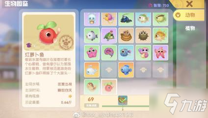 摩尔庄园手游红萝卜鱼是很重要的存在,这个的话,也是十分特殊的,在近期才刚刚上线,比较稀有的品种,用途是很广泛的,很多方面都是可以用上,不少的玩家都想要获得它,具体来说的话,到底是在哪里,什么位置上呢?下面就来看看! 摩尔庄园手游红萝卜鱼在哪? 是在浆果丛林钓到的。 红萝卜鱼钓鱼地点:浆果丛林 天气:晴天 时间:白天 摩尔庄园手游红萝卜鱼是在浆果丛林钓到的,天气要求为晴天,时间为白天,也就是晴朗的白天,还是挺严格的。 天气的讯息大家可以在自己家园里的电视机里看到(游戏里),电视上可以看天气预报。晴天的时候就可以去钓红萝卜鱼了。 时间:白天。时间要求为白天,白天也就是早上6点到晚上的8点(20点),6:00-20:00。 红萝卜鱼作用:参与限定品收集活动。需要收集新的鱼种、作物、菜谱,其中包含红萝卜鱼,集齐所有夏日限定图鉴,即可领取大奖-憨憨小猪套装。 【浆果丛林出产鱼类】 斑马鱼、变异斑马鱼、花罗汉鱼、枫叶鱼、芭蕾鱼、水蜘蛛、水蛇、蒜头蛙、银龙鱼、河童、礼服鱼、鸭嘴怪怪、冰淇淋鼠 晴昼:彩翅鱼 白昼:枫叶鱼 雨昼:河童 黑夜:幻彩鱼,礼服鱼 雨夜:许愿龟,斑点鲨 下雨:水蜘蛛 |