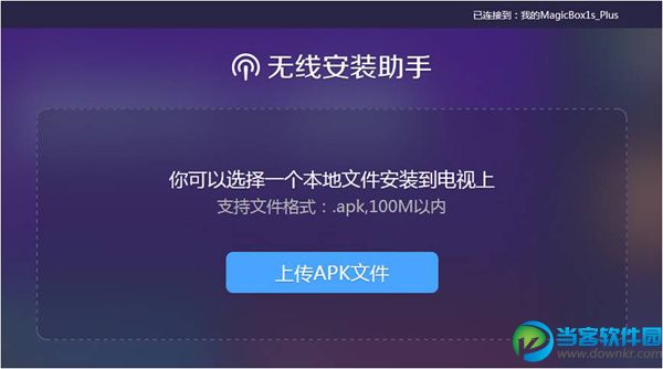 第四步,电脑浏览器输入完上面的链接后,会出现无线安装助手提示“上传APK文件”的提示页面;