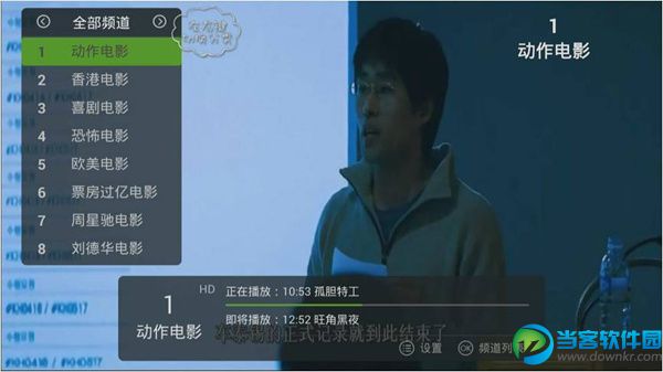 上面是“轮播频道”的观影界面,包含动作电影、香港电影等类别的影视内容,片源丰富,定期更新。