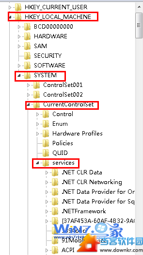 2、然后依次展开定位到“HKEY_LOCAL_MACHINE/SYSTEM/CurrentControlSet/Services/Tcpip/Parameters”项;