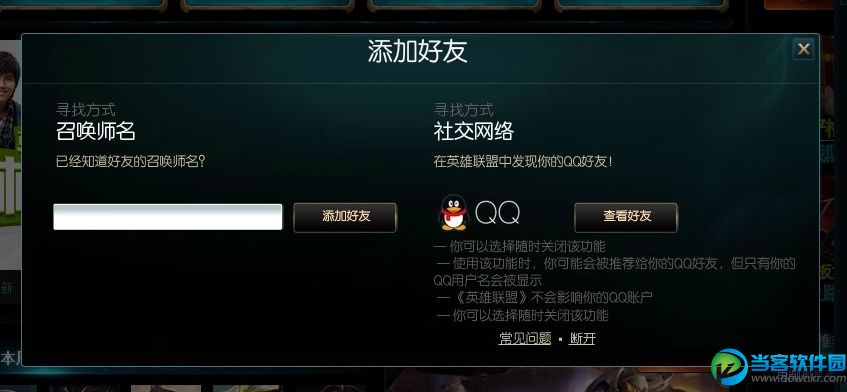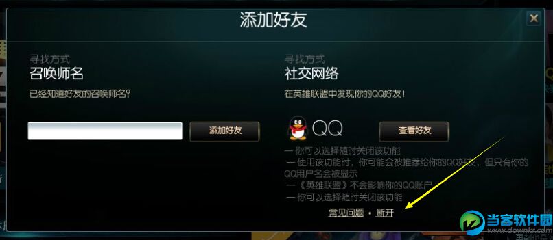 · 当你想要断开好友推荐系统时,只要来到“添加好友”页面,点击“断开”按钮即可。断开后你将无法收到QQ好友推荐的提示,但是之前在游戏中添加过的QQ好友还是可以一起继续玩耍的。