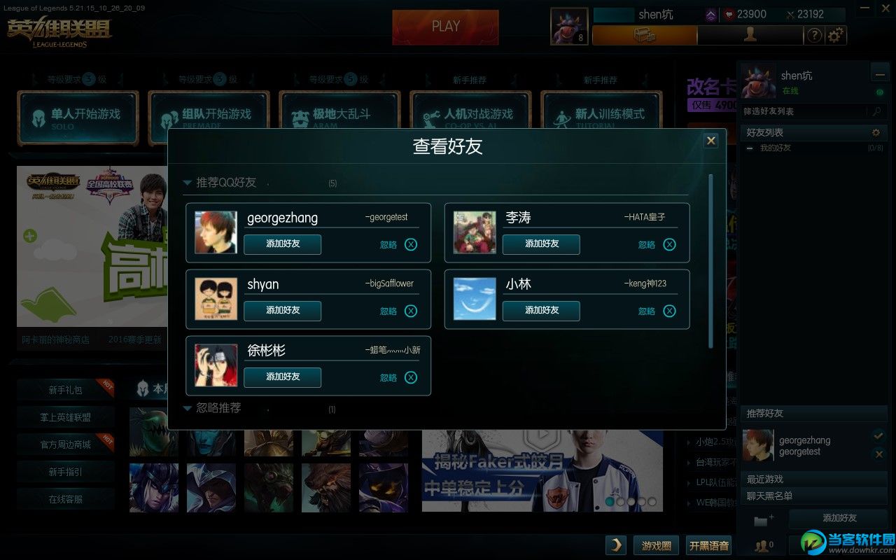 · 也可以点“忽略”来忽略推荐,忽略推荐后,这个玩家将会出现在忽略推荐列表中,还是可以被添加,但是他不会再出现在游戏首页的好友列表中“推荐好友”栏内。