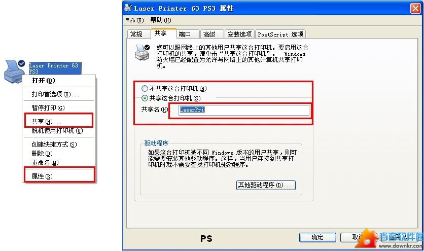 打印机右键设置共享