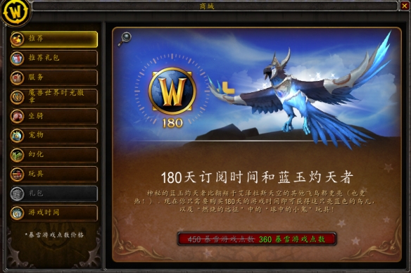 魔兽世界推出了一只新的半年卡充值活动坐骑——蓝玉灼天者。
