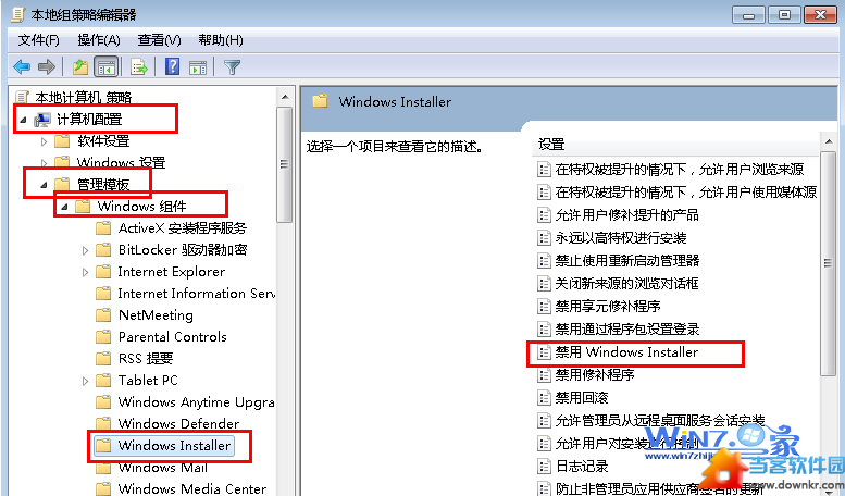 对于办公室人员来说office软件是经常会用的到的吧,但是最近我一朋友跟我说他将之前的office2007卸载了,然后重新安装了office2003版本,但是在安装的时候却出现了系统管理员设置了系统策略,禁止此项安装的问题,导致了office无法安装,遇到这种故障要怎么办呢?现在就跟大家分享一下如何解决安装office2003提示组策略禁止安装故障吧。 方法一、 1、打开运行对话框并输入“regedit”回车进入注册表; 2、然后依次展开HKEY_CLASSES_ROOT\Installer\Products这个注册表项目; 3、然后将4080110900063D11C8EF10054038389C这个项目删掉,如果出现多个这样的项的话,删除没有子项目的那项即可。 方法二、 1、打开运行对话框输入“gpedit.msc”打开组策略; 2、在打开的组策略窗口中,展开左侧的计算机配置---管理模板---windows组件---windows installer项,然后在右边窗口中找到并双击“禁用windows installer”项; 3、在弹出来的对话框中选择“未配置”或者“已禁用”即可。 方法三、 首先依次打开“开始-控制面板-管理工具-本地安全策略” 点击软件限制策略,如果提示没有定义软件限制策略,那么就右键创建软件限制策略,创建后,双击右侧“强制”项,选择除本地管理员以外的所有用户,确定即可。 以上就是关于如何解决安装office2003提示组策略禁止安装故障,有遇到这样故障的朋友们不要担心赶紧按照上面的三个方法试试看吧,总有一种方法可以帮你解决问题哦 |