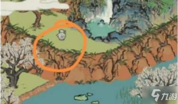 1、通过这个线索推断,三秋酒在瀑布的位置,也就是地图左上角,鱼跃龙门那里的河对面,总体而言比较难找