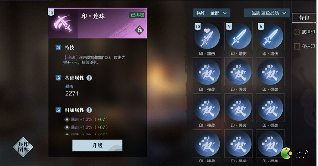 兵器的品质越高,可附加的兵印数量越多,而且还能被继承。