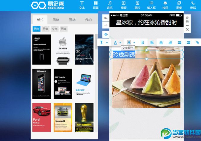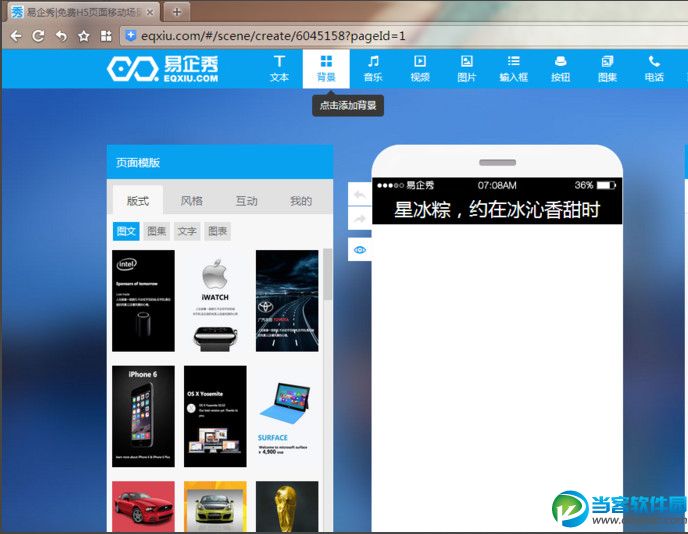 小伙伴们可以注意一下顶部的工具栏,今天主要用到文字、音乐、背景、图片这四项。