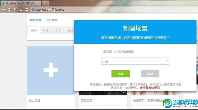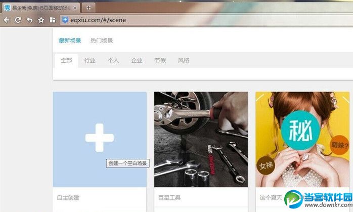 默认进入“我的场景”,点击创建场景,进入场景库。如果你喜欢秀粉们分享的场景,也可以直接选择编辑。今天我们先使用“自主创建”来创建一个新的空白场景。