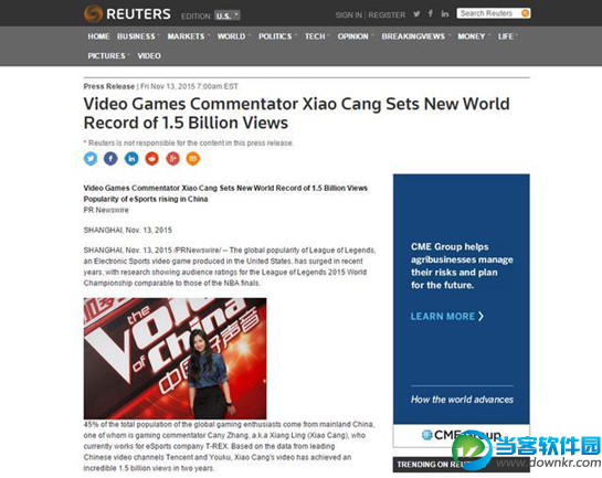 LOL电竞视频解说第一人小苍登上美国时代广场