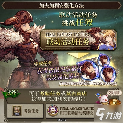 全球下载量共计突破2200万,由史克威尔艾尼克斯推出的《最终幻想:勇气启示录 幻影战争》于近期宣布与《最终幻想战略版》展开联动。 本次活动将推出全新联动兵员与幻兵卡,以及可以获得很多惊喜奖励的活动副本,可能初次接触该游戏的小伙伴会感觉到有些迷茫,那么本文就带领大家了解一下活动相关内容以及快速获取奖励的方法,一起来看看吧。 联动兵员获取方法 加夫加利安 在联动活动期间登录便可以获得。 拉姆萨 使用收费幻导石进行三次十连召唤,确保1名UR兵员“拉姆萨”。 联动兵员强化指南 加夫加利安可以通过挑战联动活动任务,获得极限突破素材以及强化素材。并且,在获得加夫加利安碎片的同时,也能获取其他奖励。 而在考验任务和莫古商店中,也能获得或者通过奖牌交换换取加夫加利安的碎片,大家可以多多参加活动。 联动武具获取与强化方法 挑战高难度EX任务可以获得SSR品质的联动武具“纳格拉洛克”。具体就是参加相关活动,然后完成任务获得制作配方,进而收集制作素材制作“纳格拉洛克 ”。 此外,使用相同武具当作素材所制作的武具,成长率将比平时更加提升。 其他联动活动 1.FFT联动副本开启。通关会掉落FFT奖牌,可以前去莫古力商店兑换道具奖励。 2.莫古力商店上线召唤奖牌兑换道具活动。 3.联动商店开启,可以购买兵员碎片等道具。 4.公测纪念结合联动FFT登录活动。可以获得活动奖牌和加夫加利安碎片,和拉姆萨兵员碎片和钻石奖励,建议初次游玩的玩家从考验任务开始游戏。 以上便是本次《最终幻想:勇气启示录 幻影战争》x《最终幻想战略版》联动活动的主要内容,更法和攻略请继续关注官方平台。 |