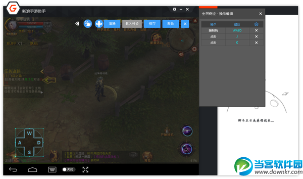 第四步:点击手游助手下方的小键盘图标,点击后开始设置虚拟键盘。拖动方向键,然后给每个技能设置一个自己习惯的按键,最后保存。
