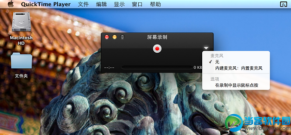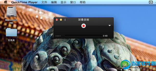 2. 在QuickTime菜单栏中点击文件>新建屏幕录制,这时会出现屏幕录制对话框