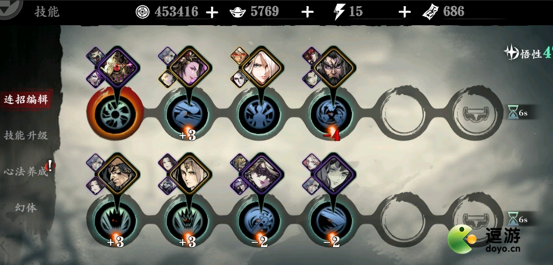 主要是觉醒打伤害,下链的是提供独立增伤用的,两个杀意技能可以不上,但是现在没有羽衣很麻烦,然后蛇女放切割那里提供中毒,现在我没有冰山所以武器用的是燃烧,然后组队可以蹭队友的缓速,这样就齐的差不多。