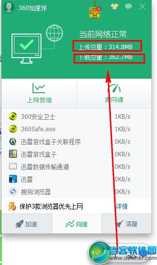 如果我们想知道和管理管理电脑各软件及进程的网络使用情况,我们可以通过360流量监控来查看。那么360流量监控在哪里,360流量监控怎么打开呢? 1、想要看流量的话,只需要点击加速球后切换到“网速”,然后就可以看到上传下载的流量 2、如果想了解详细的流量,就要到“360流量防火墙”里去看。这时候要点击“上网管理” 3、在“管理网速”中就可以查看到详细的流量监控信息 360安全卫士官方绿色版下载https://www.downkr.com/soft/7131.html 以上就是360流量监控在哪里 360流量监控怎么打开的介绍,想要了解更多更全面的资讯,请关注当客下载站。 |