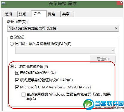 1、选择了身份验证里的“使用可扩展的身份验证协议”,如下图所示: