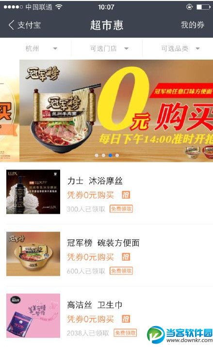 2、在超市惠中我们可以看到超市圣诞狂欢周的活动入口,支付宝用户可以免费领取礼券;