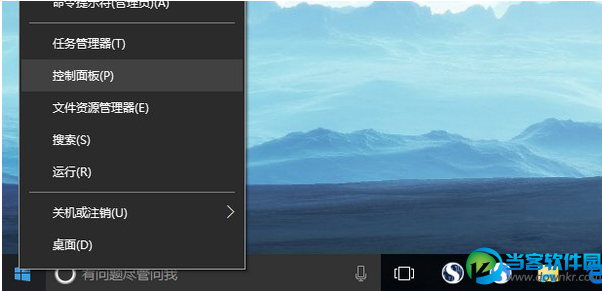 在开始菜单按钮右键,弹出菜单中选择【控制面板】