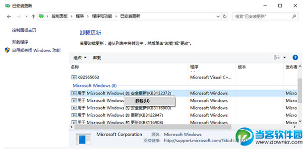 4. 在列表中,找到名为【KB3132372】的更新,右键选择【卸载】