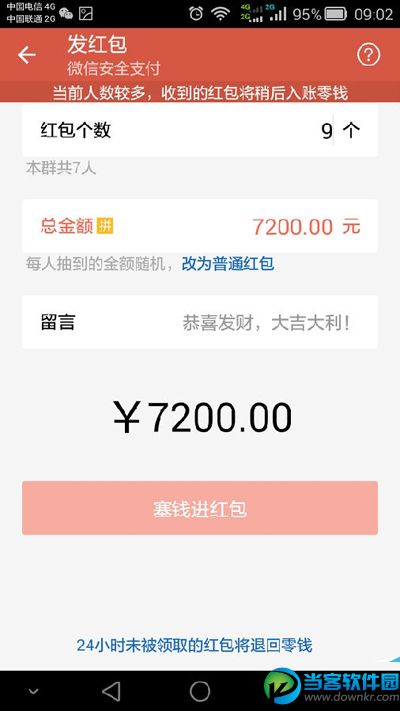 微信红包是很多网友都在玩的,大家都知道,微信发红包只能发不超过200元的金额。那么,有没有什么办法可以一次发出超过200元金额的微信红包呢?其实,这个问题也不难解决,只是我们需要细心的观察一下微信红包发送界面,就会发现,微信红包发超过200元是非常简单的!赶紧试一试吧! 微信红包 微信红包超过200元操作方法: 1.先确定你要发红包的群,点输入框边上的+号,点红包; 2.输入您要发送的红包大小; 3.将微信红包改为普通红包,就可以发了。 多个微信红包突破200元上限的方法是一样的。 微信下载:https://www.downkr.com/soft/20904.html 更多资讯请点击:https://www.downkr.com/article/ 如果大家想了解更多关于软件最新资讯,请持续关注本站,本站小编将在第一时间为大家带来最好看、最有趣、最新鲜的软件资讯。更多精彩内容,尽在当客下载站。 |