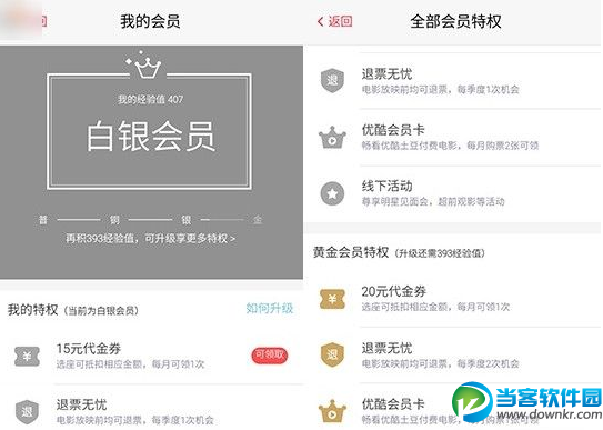 淘宝电影V5.7的版本更新,同时也带来了一份惊喜——会员特权,用户根据自己的会员等级每月都可以获得不同额度的代金券,并且可以兑换优酷土豆的月卡以及参与线下活动。