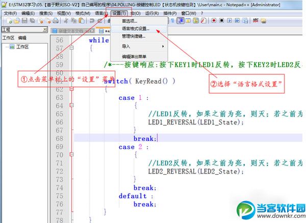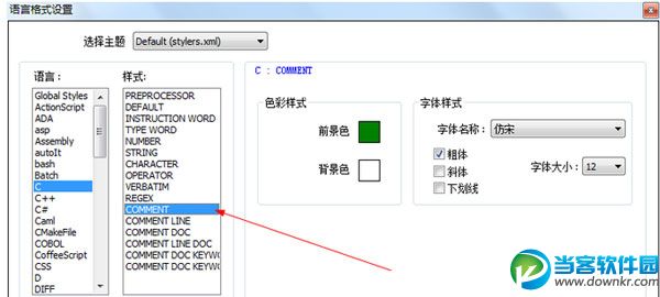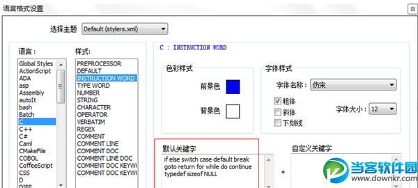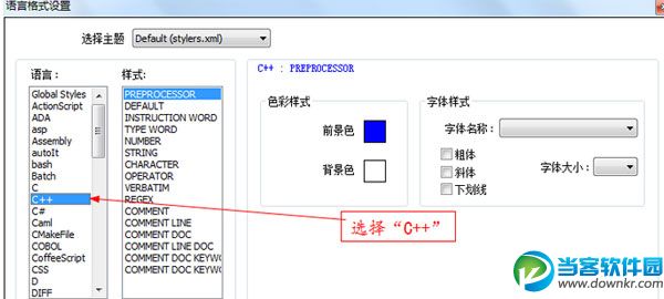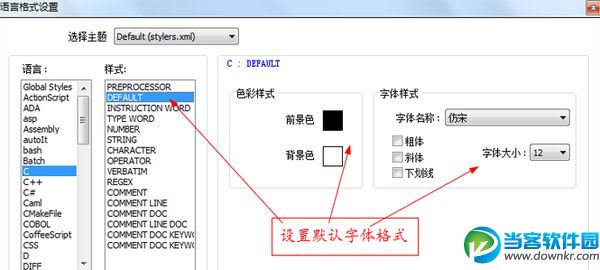 Notepad++是一款免费的源代码编辑器,并且可以替代系统自带的记事本的功能,那么Notepad++怎么设置字体大小呢?下面小编会带来详细教程。 Notepad++怎么设置字体格式 一、在。C源文件中字体的格式的设置 1、首先,点击菜单栏上的“设置”菜单,然后在弹出来的下拉列表中选择“语言格式设置”,具体操作情况如下图所示: 2、选择“语言格式设置”后,系统会自动弹出语言格式设置对话框。接下来我们选择“C”表示我们将对。c格式的文件进行设置,具体操作情况如下图所示 3、设置预编译字体格式。接着上一步骤,我们在“样式”的那一栏中选择“PREPROCESSOR”表明我们要对预编译字体进行设置,具体操作情况如下图所示 4、设置默认字体格式。接着上一步骤,我们在“样式”的那一栏中选择“DEFAULT”表明我们要对默认字体进行设置,具体操作情况如下图所示 5、设置关键字字体格式。接着上一步骤,我们在“样式”的那一栏中选择“INSTRUCTION WORD”表明我们要对关键字字体进行设置,具体操作情况如下图所示 6、设置数字字体格式。接着上一步骤,我们在“样式”的那一栏中选择“NUMBER”表明我们要对数字字体进行设置,具体操作情况如下图所示 7、设置注释字体格式。接着上一步骤,我们在“样式”的那一栏中选择“COMMENT”表明我们要对注释字体进行设置,具体操作情况如下图所示 8、由于很多操作都是重复性的操作,所以这里我就不再赘述了。设置好后的效果如下图所示 二、在。h头文件中字体的格式的设置 1、关于在。h文件中字体格式的设置,关键字啊、数字啊、注释之类的,设置方法都和上面介绍的一样,我就不再赘述了。唯一不同的是,在语言格式设置对话框中的“语言”那一栏我们选择“C++”而不是“C”。具体情况如下图所示 2、安照在。c源文件中的设置方法,一步步进行设置,最终效果如下图所示 更多资讯请点击:https://www.downkr.com/article/ 如果大家想了解更多关于软件最新资讯,请持续关注本站,本站小编将在第一时间为大家带来最好看、最有趣、最新鲜的软件资讯。更多精彩内容,尽在当客下载站。 |
