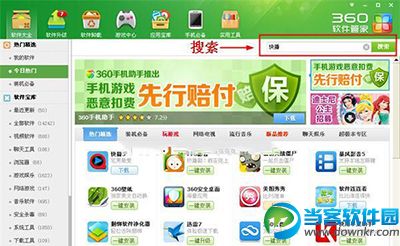 1、打开360安全卫士中的软件管家,搜索你需要的软件。