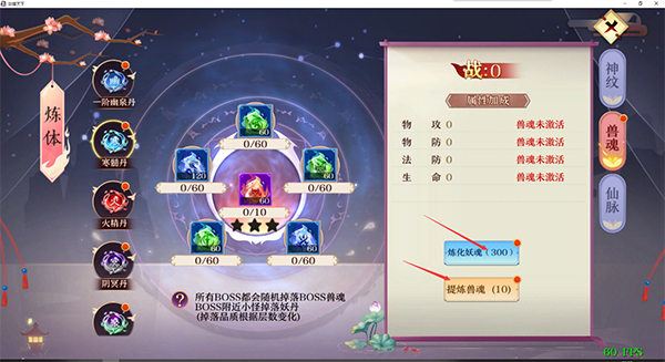 1. 兽魂系统里有兽魂和妖魂两种材料