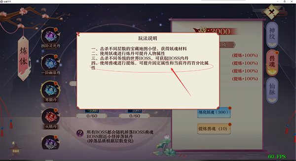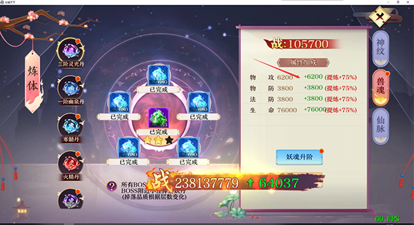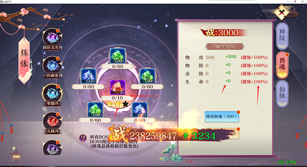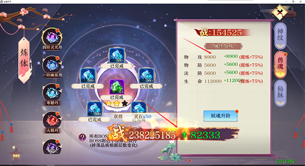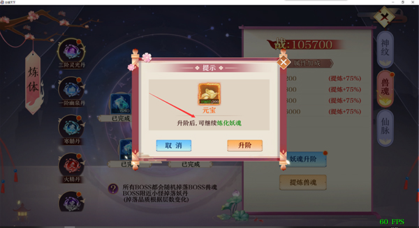 3. 通过炼化妖魂来增加丹药给主角的基础属性加成,当炼化完一定数量,需要升阶才能继续炼化