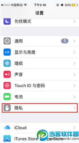 步骤1:打开手机设置,向下拉就可以看到“隐私”(如上图)点击进入“隐私”设置中去。