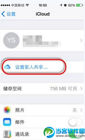 步骤1:打开手机设置,有个iCloud选项,点击进入。就可以看到有个设置家人共享选项,如上图。