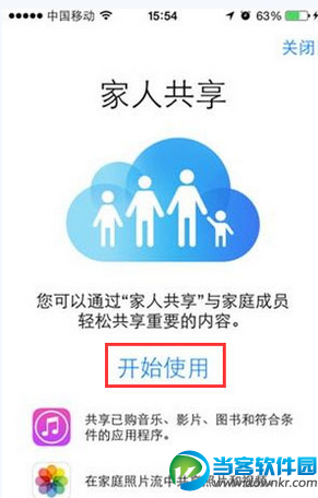 步骤2:通过“家人共享”设置,其中有,照片共享,共享日历,还可以共享一些购买好的电影,音乐,电视节日,书籍等,但是我们这里说的就是定位。共享其中就有一条定位,共享我的位置,开启即可。