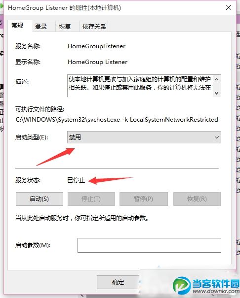 2、双击打开或右键单击“属性”命令,在弹出属性界面窗口,在常规选项卡单击启动类型的下拉框,出来的列表选择“禁用”。然后在服务状态下单击“停止”按钮,修改后单击“确定”按钮保存设置。