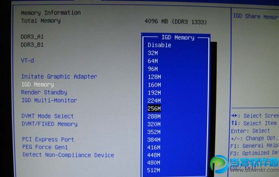 2、IGD Memory项就是设置显存大小的。