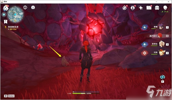 进入山洞之后会看到一个红色的心脏,心脏前面有一个小小的牙齿,捡起来就可以领取任务。