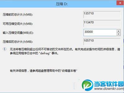 win10怎么安装双系统?当客下载站分享Win10安装双系统教程。 今天,小编就给大家分享一下Win10双系统的安装方法。可能很多网友会认为在电脑上安装双系统是一键非常难的事情,但是,您要是看到今天的win10系统使用教程,可能会改变之前的偏见。那么,Win10双系统是怎么安装的呢?其实秘诀就是:分区安装。下面,就一起来看看Win10双系统的安装方法吧! 压缩卷 一、分区 开始我们先要为Win10系统准备一个分区,最好是准备一个干净的分区,以便之后不想用的时候可以删除,如果你已经有分区直接使用即可,没有的话可以在较大的分区中划分出一个分区出来; 1、打开磁盘管理,找一个剩余空间较大的分区,右键单击选择“压缩卷”: 2、输入合适的大小(这里作为演示仅分配30GB空间,建议不小于40GB),点击“压缩”。之后会在你选择的分区后面出现一个未分配空间。 压缩 3、 在未分配空间上右键单击,选择“新建简单卷”,再出现的窗口中一路点击“下一步”即可。注意,如果提示你需要将硬盘转换为动态磁盘,那是因为你的硬盘是MBR分区结构,主分区数量已经超过了该分区类型的最大限制——4个,此时请放弃分区操作。 |