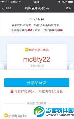 蚁花呗必优码是什么?蚂蚁花呗必优码是一个兑奖码,蚂蚁花呗老用户(已签约用户)分享自己的必优码给好友,若好友首次开通花呗,则双方均可获得相应奖励,该活动仅限于手机端。 蚂蚁花呗必优码怎么得呢? 1、首先,打开支付宝首页,点击箭头所指的蚂蚁花呗位置,小编已经圈出来了! 2、在蚂蚁花呗的界面,点击右上角更多的位置!就是箭头指的位置! 3、看到框框里蚂蚁花呗必优码的位置了吗?果断戳进去! 4、在这里,你就能看到你的必优码了,另外,你还可以分享给好友。推荐好友满6人,每位再得2元红包! 以上就是小编带来的蚂蚁花呗必优码的获取,更多好玩有趣咨询请点击https://www.downkr.com/ 如果大家还有想了解关于更多关于软件相关的资讯,请关注当客下载站。本站会实时更新最有趣,最好看,最新鲜的资讯。当客下载站,值得你的关注。 |