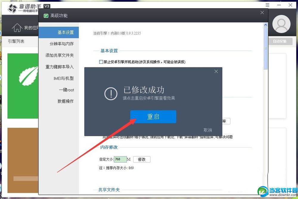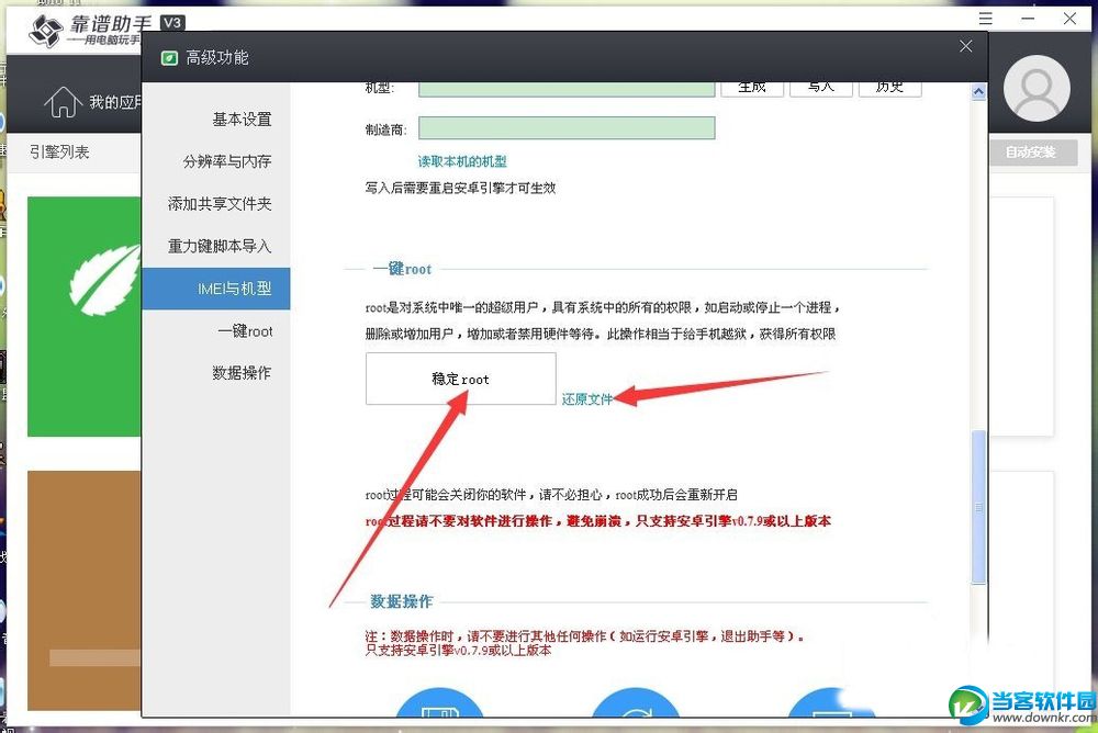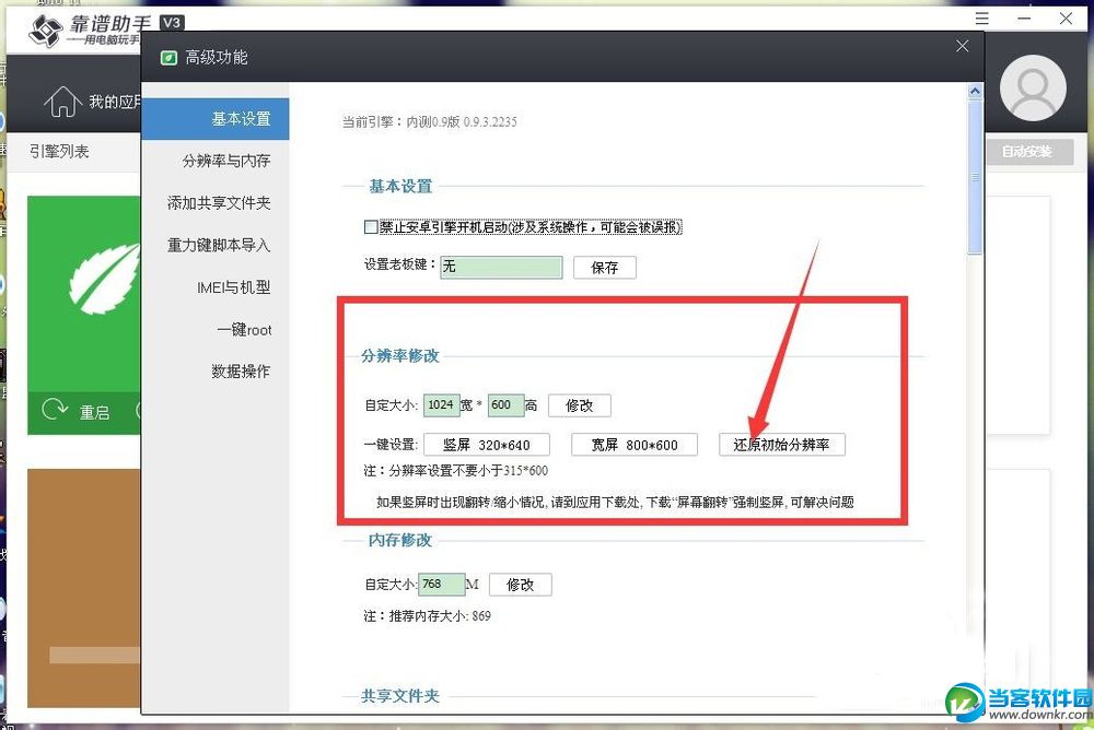 方法/步骤: 1、安装下载靠谱助手,打开靠谱助手,然后点击图上的位置,也就是引擎管理! 2、然后就会出现如下的界面,单击鼠标左键安装引擎就可以安装安卓引擎了!下载需要等一会! 3、下载完成引擎后,点击启动,等一会就可以启动引擎了,注意的是启动引擎需要一会的时间! 4、如果每次启动软件都用一个引擎,可以将这个引擎设为默认,如下图所示的位置,点一下! 5、还有的就是安卓模拟器的字体大小可能显示不正常,可以点击图下的位置进行调节,也就是这个高级设置! 6、然后,根据自己的需要设置好分辨率的大小,系统字体就正常了,如下图所示的位置,填入适当的分辨率! 7、安卓模拟器最重要的就是设置内存了,点图下的位置,进行设置,在图下的位置填入适当的内存,这个根据个人需要,和电脑的情况了! 8、设置完上一步以后,是需要重启的,会弹出如下的界面,点一下重启就可以了!内存就修改好了! 9、最后,有些软件是需要root的,在这里可以设置root,点一下图下的位置,然后如果想还原的话,可以点还原文件,很简单的!如下图! ,更多好玩有趣咨询请点击https://www.downkr.com/ 如果大家还有想了解关于更多关于软件相关的资讯,请关注当客下载站。本站会实时更新最有趣,最好看,最新鲜的资讯。当客下载站,值得你的关注。 |