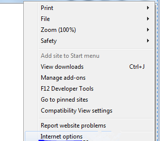 1、打开IE浏览器,点击Tool——Internet Options(Internet选项)。
