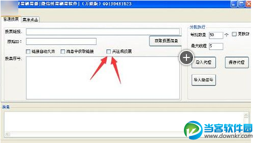 4、注意事项:一定要在微信投票刷票软件上(打钩关注后投票)选项