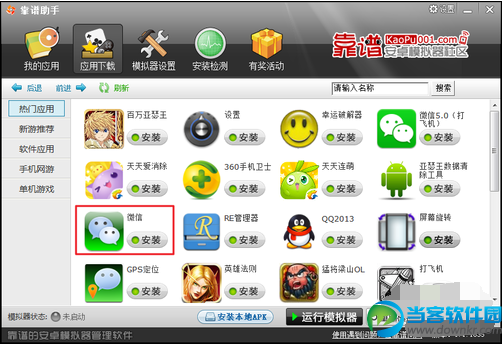 进入到安卓资源推荐列表,我们选择微信为示例看看到底如何在电脑安卓模拟器上安装使用微信。
