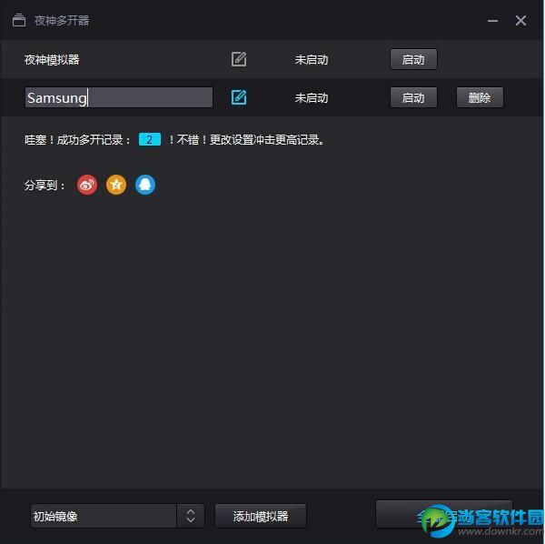 夜神模拟器是一款强大的电脑模拟软件,用户通过这款软件可以安装安卓手机的游戏和软件哟,而且还支持多开的功能,那么夜神模拟器怎么多开呢?小编就给大家具体介绍下夜神模拟器多开功能。 注意:多开需要模拟器版本V1.1.5.0版本以上,建议官网下载最新版模拟器 进入到页面中可以点击解锁按钮,解锁需要启动读取进度条,进度条读取完毕即可启动,只要电脑配置较高,可以支持无限多开; 当然也要看电脑的配置哦,配置不好的可能会有些卡顿发生,建议大家量力而行。 初始镜像选项为打开一个全新的模拟器,里面没有上一个模拟器安装的任何软件,下面的选项samsung就是多开一个跟samsung安装一样应用的模拟器,相当于复制上一个模拟器。 其中启动按钮为启动模拟器功能,删除按钮为删除模拟器及模拟器中所有数据功能,请大家删除时一定要备份好自己的数据。 模拟器支持改名功能,可以自己设置模拟器名称,方便区分模拟器。 模拟器多开占用电脑内存比例如下: 在设置中如果设置性能 低 中 高三个档 则分别占用 2/8 3/8 4/8的内存比例 多开情况下就是,如果设置的是中档性能,则一个多开占用3/8 在多开一个又加3/8依次类推 更多资讯请点击:https://www.downkr.com/article/ 如果大家想了解更多关于软件最新资讯,请持续关注本站,本站小编将在第一时间为大家带来最好看、最有趣、最新鲜的软件资讯。更多精彩内容,尽在当客下载站。 |