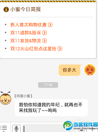 阿里巴巴在手机淘宝中推出了一个新的智能客服——阿里小蜜,能够帮助淘宝的用户来解决各种各样的难题,那么要再哪里才能够找到阿里小蜜呢,阿里小蜜的使用方法是怎样的,一起来详细的了解一下吧。 阿里小蜜在哪里: 登录手机淘宝,进入人物首页。可以看见栏目里多了个阿里小蜜。 阿里小蜜的功能: 阿里小蜜的使用方法: 现在新注册的的用户都可以使用阿里小蜜。我们点击阿里小蜜。 随便说一句话调侃一下,可以发现在无聊时,它还能逗你玩。 同时还自带一些淘宝最新信息等等,非常方便。 点击麦克风边上的标志,可以切换出小蜜的工具栏。 是不是很好用呢,以后就可以少去找人工客服的麻烦,直接通过阿里小蜜来解决事情了。 更多资讯请点击:https://www.downkr.com/article/ 如果大家想了解更多关于软件最新资讯,请持续关注本站,本站小编将在第一时间为大家带来最好看、最有趣、最新鲜的软件资讯。更多精彩内容,尽在当客下载站。 |