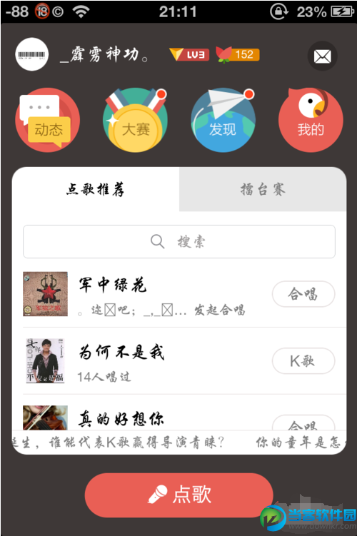 全民K歌怎么给别人送花?全民K歌送花教程一览。 业余时间凭着自己的爱好,唱唱歌,与朋友互动一下,是一件很开心的事情,那怎样在手机上与朋友互动呢,今天当客下载站小编教大家怎么在全民K歌上给别人送花。 全民K歌怎么送花、评论、加关注教程。 首先,打开手机中安装过的软件,首页如图所示,找到左上角的动态。 在动态页面,有好友榜,也有附近K歌,点击右上角,可以直接查找用户,输入用户ID即可,如图所示。 点开一首自己喜欢的歌,找到鲜花榜,点最下方的鲜花,可以跳转到送花页面,输入送出的鲜花数,即可送花成功。 在此歌的最底部,找到评论,输入想说的话,即可评论了,如图所示。 如果喜欢这位歌手,就在最上方,点击关注吧。 |