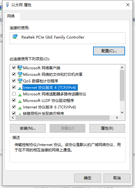 6、进入以太网的属性窗口后,双击列表中的【Internet协议版本4】。