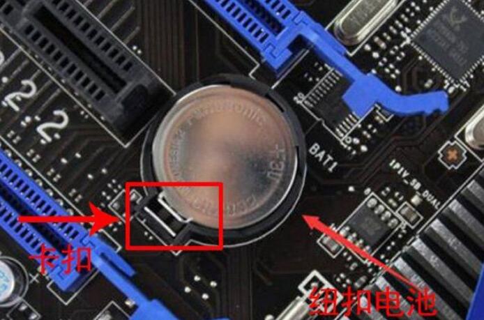 主板BIOS错误故障也会导致这个问题,尝试将BIOS设置恢复出厂设置,将主板上纽扣电池取下来,放置几分钟之后,再将纽扣电池安装原位即可恢复BIOS初始值。取下纽扣电池也十分简单,将卡扣往外扳,纽扣电池就可以自动弹出来,就可以直接取下来了。